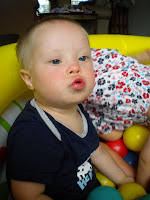 Now little Eli, he is also doing really well. He makes eye contact much more with us and really seems to know we are "his" people. He is CRAWLING, which is amazing considering the fact that he would randomly fall over from a sitting position at the orphanage because he lacked the strength. He does have a SERIOUS temper, but we are working on that one! ;) Eli has also made great improvement in the area of eating. He will chew and bite off food and with help can feed himself. So proud of my little man!